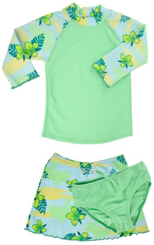 Tropical Breeze UV Sun Protective Girls 3 Piece Set: 3/4 Sleeve Sunshirt, Bikini Bottom & Detachable Skirt (UPF 50+) Feature