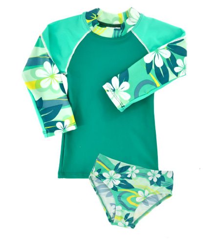 The Shoreline 2-Piece Outfit offers both sun protection and a fashionable look. A long sleeved sunshirt (aka rashguard) is paired with an all print bikini bottom to complete this stylish outfit. Bikini bottom is lined. The Shoreline top is designed with an attractive solid and print fabric combination and made from high quality, tested fabric to provide a great look that protects all day long. All TUGA tops are designed with a 'high neck' style to offer the most sun protection. The lightweight material is comfortable and fast-drying, so no worries about a wet, heavy shirt at the pool or beach. Swimwear is made from chemical-free fabrics with UPF 50+ protection, which offers maximum sun protection! SIZING: Use age as a starting point for children. Weight and height are the best guides to go by. All our clothing is designed to fit loosely in order to provide the highest sun protection possible. Please check our TUGA SUNWEAR size charts to ensure the best fit.Customer Reviews